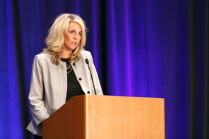 - GEDTS VP Vicki Greene speaks during the awards luncheon.