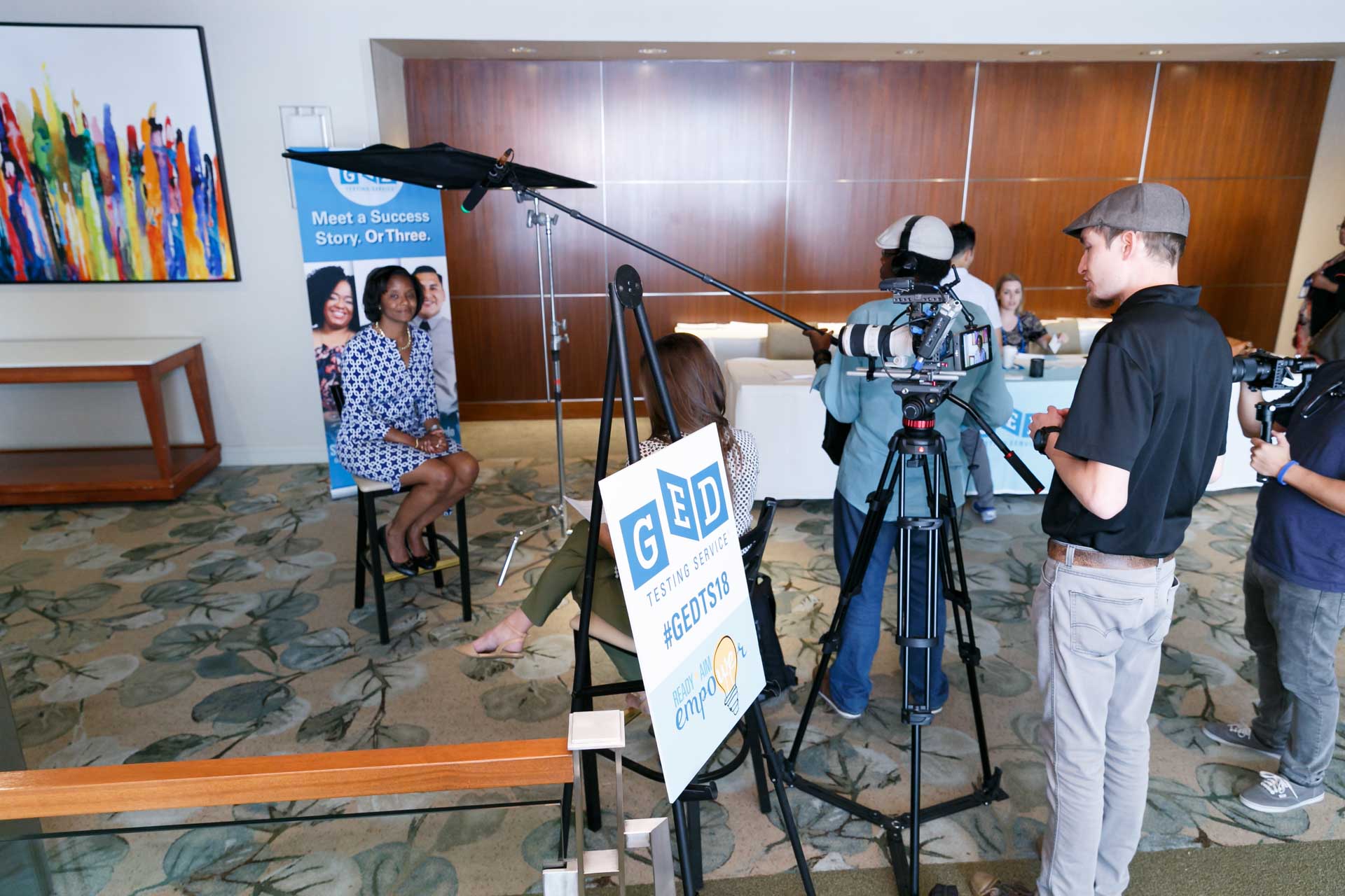 - Oregon GED Administrator Adrienne Ochs participates in an interview.