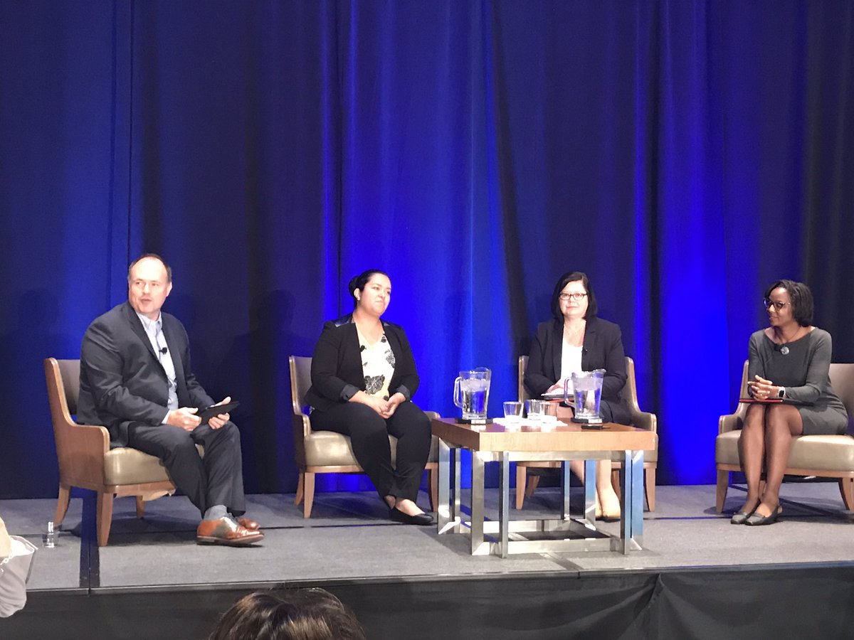 - CT Turner, Carolina Hernandez Ortiz, GED Administrator Rae Smith and GED Administrator Adrienne Ochs participate in the adult ed panel discussion.